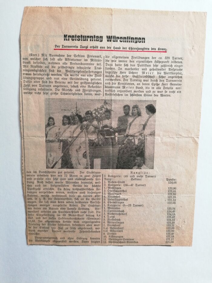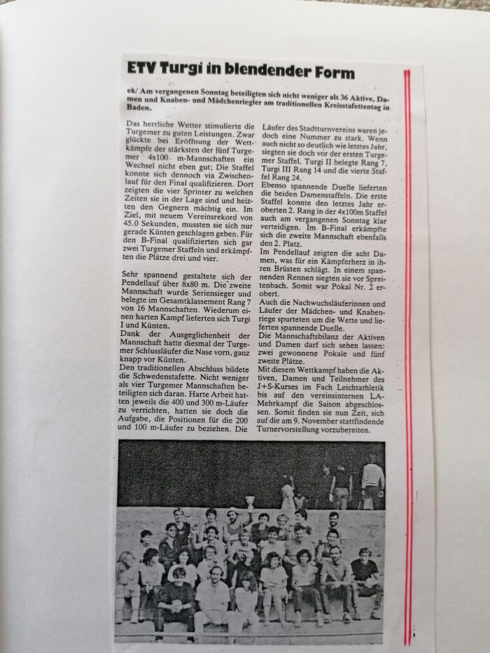 Der Turnverein STV Turgi feierte im Jahre 1999 sein 100jähriges Bestehen. Diesen Geburtstag nimmt der Verein an der Limmat zum Anlass, verschiedene Jubiläumsfeierlichkeiten über das ganze Jahr zu begehen. Begonnen wird das Jubiläumsjahr mit einer Ausstellung über das Wochenende vom 23./24. Januar im Bauernhaus an der Limmat in Turgi.